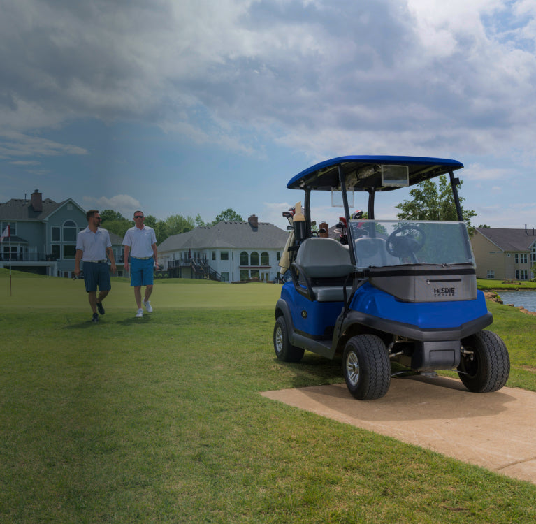 Golf carts, low speed vehicles, utility terrain vehicles, and all-terrain vehicles are designed to work hard and play hard, but where to store your frosty beverages while out and about? Say goodbye to plastic bags with ice or bulky coolers that take up precious cargo space and say hello to the Hoodie Cooler.